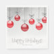 Este bonito design de guardanapo de papel tem um padrão de Enfeites de natal pendurados em tons de vermelho. O fundo é um sutil padrão gradiente de árvores de Natal estilizadas. Procure ID251 para ver outras opções de cores e produtos adicionais com este design.
