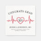 Este guardanapo de festa de formatura com tema de batimento cardíaco apresenta uma linha de ECG vermelha em negrito que atravessa o design, com um coração no centro. Dentro do coração, "Turma de 2026" (ou qualquer ano) é exibido, tornando-o uma homenagem perfeita a um graduado em medicina ou enfermagem.