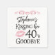 Feliz Aniversário Beijando Uma Década Tchau Papel De Festa Personalizada Napkins. Comemore um aniversário começando uma nova década com esses guardanapos de festas engraçados apresentando um design de tipografia moderna e editável para o ditado NAME'S BEIJANDO HER "DECADE" GOODBYE (a amostra mostra 40 anos por um quinquagésimo aniversário). ALTERAÇÕES: O estilo de fonte de texto personalizado, a cor, o tamanho e o posicionamento, bem como as cores de gráficos e de fundo, podem ser alterados para serem coordenados com as cores do tema da sua parte (mostradas em rosa e preto). OPÇÕES NAPKIN: O exemplo é mostrado no tamanho de coquetel de 4,75x4,75 polegadas em branco—outros tamanhos e cores de papel absorvente estão disponíveis na página de pedidos. ASSISTÊNCIA: Para obter ajuda sobre modificação ou personalização do design, alteração de cor, redimensionamento, transferência do design para outro produto ou sobre como coordenar itens, entre em contato com o designer ANTES DE PEDIR por meio do Zazzle Chat ou makeitaboutyoustore@gmail.com.
