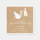 Com uma adorável cegonha carregando uma entrega especial de estrela dourada em um fundo kraft rústico neutro em termos de gênero, este guardanapo é perfeito para um chá de bebê especial. Personalize os detalhes do seu evento com tipografia sofisticada. Criado por Thisisnotme©