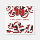 Esses guardanapos de festa de aniversário tematizados de vôlei são totalmente personalizáveis e apresentam clusters de volichões vermelhos, pretos e brancos nas bordas superior e inferior - personalize com seu texto personalizado - por katz_d_zynes