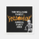 Legal guardanapo de papel da família anual do Dia das Bruxas, que apresenta um esqueleto assustador pendurado sobre um texto negro e cor de laranja e um incrível Jack O Lantern. Personalize esta decoração com as suas grandes informações de bash para todos os seus convidados.