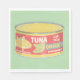 Uma ilustração retrógrada do estilo publicitário de uma lata de atum. Esta lata de peixe tem um rótulo que diz que o atum é elevado em Ômega 3 e que é pescado de forma sustentável. Mente para qualquer um que goste de comida enlatada