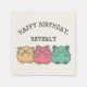 Crie alguns bens festais adoráveis para festas de hamster. Estes guardanapos de papel apresentam ilustrações bonitas do estilo de desenho kawaii de hamster em amarelo, rosa e verde com sua mensagem personalizada acima em letras de cinza.
