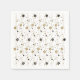 Um elegante design de guardanapo de papel Hanukkah com estrelas em ouro e preto sobre fundo branco com fios e pontos dourados. Elementos de coordenação disponíveis.