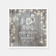 Guardanapos de papel para celebração de noivado com características de madeira escura rústica com luzes espalhadas e "Eu Faço Churrasco" com aliança de diamante como o "O". Itens correspondentes nesta coleção.