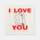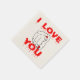 Eu te amo escrevendo com letras vermelhas que pingam sangue e um desenho de uma mão feminina com um dedo indicador apontando para o espectador. Por diversão e amor. Guardanapo de Papel.