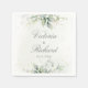 Lindos guardanapos de casamento com eucalipto aquarela e folhas de ouro.