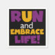 Se você gosta de correr, correr 5Ks, 10Ks, meia maratona, ou maratonas, você vai adorar este design de texto colorido em roxo e amarelo que lê Run and Embrace Life! Corra e Abraça Camisas de Vida, capuzes, ímãs, botões, cartões, adesivos, correntes-chave e muitos outros itens para corredores que adoram um design brilhante e colorido!