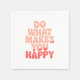 Brilhar o dia de alguém com este guardanapo alegre e elevador de mesas com a inspiradora frase "Faça o que te faz feliz" em letras vibrantes e coloridas. Quer você esteja dando a um amigo ou usando-o como um lembrete diário para liderar com bondade, este design transmite uma mensagem de encorajamento, alegria e boas vibrações.