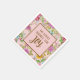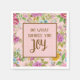 Inspiracional "Faça o que lhe traz alegria", citação em fundo de bolinhas rosa e branca com quadro floral rosa e roxo.