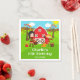 Este guardanapo bonitinho e divertido apresenta uma cabeleira preta com um cesto de maçãs e um espantalho e corvo. Ao fundo está um celeiro vermelho brilhante, uma cerca de picete marrom, árvores, luz do sol, abóboras e cestos de milho e maçãs. O texto combina fontes em negrito e sans serif para uma aparência na moda e moderna. Isto é perfeito para uma festa de aniversário temática de outono. Gráficos de MUJKA