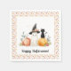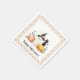 Um guardanapo de Halloween brincalhão com um fantasma de aquarela em um chapéu de bruxa, um gato preto sentado numa abóbora, e verde de outono macio. Com uma borda pontilhada em tons quentes, este design adiciona um toque fofo e assustador às celebrações de truques ou de tratadores.