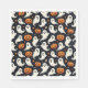 Fantasmas bonitos flutuam entre o sorriso de jack o'lanternas em um fundo preto neste divertido guardanapo de papel do Halloween.