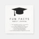 Napo de graduação minimalista apresentando um boné de formatura e "Fatos Divertidos" em letras grandes juntamente com o nome do formando em preto sobre um fundo branco. Estes guardanapos modernos e simples podem ser para um formando de menino ou menina e são uma forma excelente de adicionar um toque pessoal às suas festas de formatura.