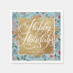 Felizes Feriados em letras brancas em chic num esplash de folha de ouro falsa em um fundo azul padrão de flores de inverno, esses guardanapos também são personalizados com seu nome. Excelente para sua casa ou presente como presentes. Mais designs na nossa loja.