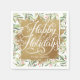 Felizes Feriados em letras brancas quicas em uma mistura de folhas falsas de ouro em um padrão de frutas vermelhas e galhos verdes, esses guardanapos também são personalizados com seu nome. Excelente para sua casa ou presente como presentes. Mais designs na nossa loja.