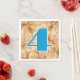 Guardanapos de festa com um tema de fazenda. Hay é a imagem de fundo de um grande número que toca a idade da criança. O número azul brilhante é esboçado em bege e a imagem de fundo está em tons de bronzeado e marrom. Devido ao tamanho do número, somente os dígitos do solteiro funcionarão.