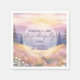 Boho and rustic Christian girl's first birthday design based on psalm 139 "Fearfully and Wonderfully Made" with a watercolor-style landscape with mountains, fir trees, wildflower meadow, and a rising sun in soft pastel colors of pink and purple.