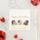 Comemore um grande aniversário com estes guardanapos de papel divertido com 3 fotos da aniversariante/garoto, 2 manchetes de texto personalizados, todos colocados contra um fundo branco acentuado com faxes de confetti de brilho dourado. Divertido e festivo perfeito para qualquer comemoração de aniversário.