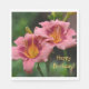 Estes guardanapos de aniversário apresentam lírios bonito e cor-de-rosa.