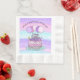 Bolo de aniversário bonito, rosa e roxo personalizado, desenhado à mão, com aspersores e balões, corações e estrelas, guardanapos de papel festa de aniversário para raparigas.