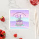 Bolo de aniversário bonito, rosa e roxo personalizado, desenhado à mão, com aspersores e balões, corações e estrelas, guardanapos de papel festa de aniversário para raparigas.