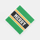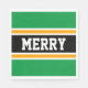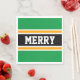 Esta design de natal esportivo apresenta texto de FELIZ atlética dentro de uma faixa preta destacada com pinstripes brancas e amarelas contra listras externas brilhantes e verdes. O texto neste design pode ser personalizado.