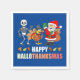 Feliz HalloObrigadoMas Cute Cartoon partidário guardanapos (Fundo Azul). Deseje a todos um Feliz Dia das Bruxas, Feliz Dia de Ação de Graças e Feliz Natal nesta temporada de festas, com este design giro, sorridente, balançando, desenho animado, peru e Papai noel. Um excelente adicional a uma festa da família ou festa com amigos.