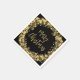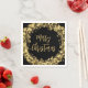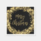 Os guardanapos de festas de Natal apresentam estrelas douradas cintilantes, círculos e pontos em torno das palavras "Feliz Natal" num fundo negro. CORRESPONDENTE a itens na nossa coleção.