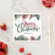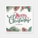 Personalize seu janto de Natal ou Festa de Natal com esses guardanapos personalizados. Eles apresentam uma borda de férias em aquarela com pinhos cones, agulhas de pinho, bagas holly, junto com as palavras Feliz Natal.