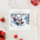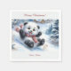Feliz Natal Napkin! Urso engraçado num trenó, neve, rolando pela montanha