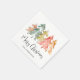 Os guardanapos elegantes para o vosso decoro de mesa de Natal, com abstrato de pinheiros a aquarelas verdes, vermelhos, dourados e aterrorizados, "Feliz Natal" num roteiro de na moda e o vosso nome numa simples tipografia moderna.