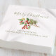 Esta design apresenta um feliz guardanapo vermelho e verde natalício, com uma simples tipografia, um roteiro elegante e mínimo de caligrafia, com verde botânico, e bagas sagradas, guardanapo minimalista do partido natalino