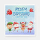 Adicione diversão à sua festa de natal de férias e eventos com este bonitinho guardanapo de natal alegre de neve de inverno com Rudolph, a rena vermelha, santa claus, um elfo e boneco de neve.