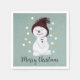 Este bonitinho guardanapo de Natal apresenta um pequeno boneco de neve tímido aproveitando a neve. O texto "Feliz Natal" é definido em uma letra de script de tendência e playfull.