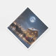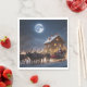 Os guardanapos de Natal com Santa Cláusula a andar de trenó com o seu Reindeer à noite com uma lua de cheio no céu.
