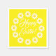Flores amarelas felzs pascoa margaridas bordas texto personalizado de script personalizado e alegre guardanapos de papel fofo. Texto de script branco personalizável elegante, fundo amarelo.
