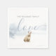 Personalize seu nome neste cartão postal de feriado chic com uma lebre no fundo de uma floresta de inverno. Projetado por Thisnotme©