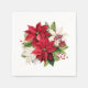 Os guardanapos de papel são mostrados no tamanho do coquetel branco com um impressão de aquarela de uma adorável mistura floral de poinsettia vermelha. Personalize este item ou comprar como está. Imagem licenciada