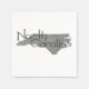 Esses guardanapos de papel temáticos da Carolina do Norte apresentam a forma do mapa da silhueta do estado da Carolina do Norte preenchida com um fundo texturizado de cinzas que se parece com um velho quadro e o nome do estado escrito na frente em uma letra preta.