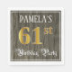 Este elegante e opulente design de guardanapo de papel com tema de aniversário apresenta um nome personalizado e a mensagem "Festa de aniversário 61ruas". O grande número "61ruas" tem um padrão de coloração de imitação/falsa inspirado em ouro, e as palavras "Festa de aniversário" estão no texto do estilo script do rico. O fundo apresenta um padrão falsa/imitado de grãos de madeira. Rico, guardanapos de papel luxuosos como este podem ser usados em uma festa de aniversário sendo realizada para honrar o sessenta e primeiro aniversário de alguém. [~Z0000566]