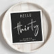 Elevem sua aniversário de 30 anos com esses guardanapos negros chiques apresentando "alô trinta" em uma mistura de simples letras brancas e um moderno roteiro branco.