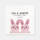 Tema de coelhinho fofo para a festa de aniversário de gêmeas, apresentando dois coelhinhos bebês cor-de-rosa.