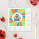 Os guardanapos de papel festa de aniversário do rapaz, azuis, verdes, amarelos e laranja. Bonito para qualquer garotinho que ama dragões! Dragão de cartum fazendo bolo de aniversário.