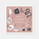 Planejar um vidente, cigano, ou festa de aniversário temática do Halloween? Acessorizar com esses guardanapos personalizados esquisitos em uma paleta de cores inspirada na natureza boho. Design apresenta ilustrações de um cobra, espelho, vela, jarro, crânio, cartões de tarô e poção em torno do seu texto personalizado.