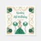 Este convite de guardanapo de aniversário apresenta uma elegante estrutura de ouro, uma bela princesa com cabelo louro e um vestido verde, flores e um balão. Isto é perfeito para uma festa de aniversário.
