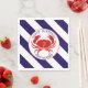 Os guardanapos de festa de aniversário com ilustração de um caranguejo vermelho e uma borda estriada diagonal azul e branca.