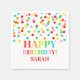 Feliz guardanapo de aniversário para festa de aniversário no padrão de confete arco-íris.