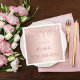 Um guardanapo para uma festa de aniversário feminina e glamourosa 50ª (ou qualquer idade). Um fundo metálico rosa dourado falso com um brilho elegante de rosa dourado, pintura gota-a-gota. O texto: O nome é escrito em ouro rosa escuro com um grande estilo escrito à mão moderno. Modelo de nome, 50 anos e data.